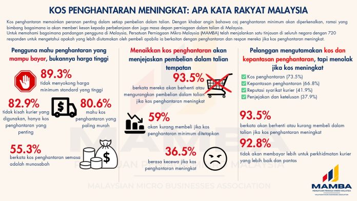 Persatuan Perniagaan Mikro Malaysia (MAMBA) menyuarakan kebimbangan terhadap cadangan menetapkan caj penghantaran minimum standard, yang dikhuatiri akan menjejaskan aktiviti jual beli dalam talian serta membebankan usahawan mikro tempatan.